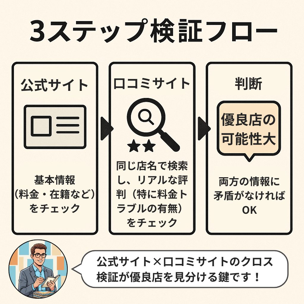 【結論】安全な店は「公式サイト×口コミサイト」のクロス検証で見抜ける